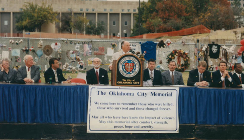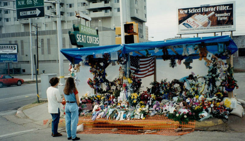 Soon after the bombing of the Alfred P. Murrah Federal Building, people wanted to express their pain and solidarity with family members of those killed, survivors and first responders. They began to create their own personal memorials. All around the perimeter of the crime scene, spontaneous memorials for those killed or injured began appearing, along with items thanking the efforts of the first responders. The site was adorned with hundreds of notes, banners, beautiful flowers and a menagerie of stuffed animals. Individuals from all over the country begin to respond by sending thousands of unsolicited memorial ideas to Governor Frank Keating and Mayor Ronald Norick. As the months passed, it was obvious that people wanted – and needed – to remember.