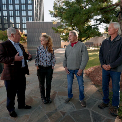 The Outdoor Symbolic Memorial stands on the now-sacred ground where the events of April 19, 1995, unfolded. What was once the footprint of the Alfred P. Murrah Federal Building, Fifth Street, the Athenian Building and Oklahoma Water Resources Board are now the Field of Empty Chairs, Reflecting Pool and Rescuers’ Orchard.